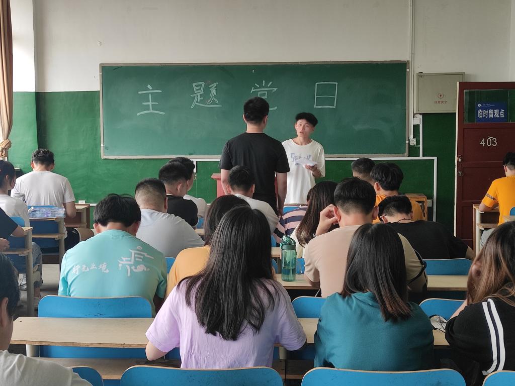 6月29日,智能装备学院学生党支部于二号楼开展主题党日活动,理论学习“中国共产党一百年大事记”,全体学生党员参加。