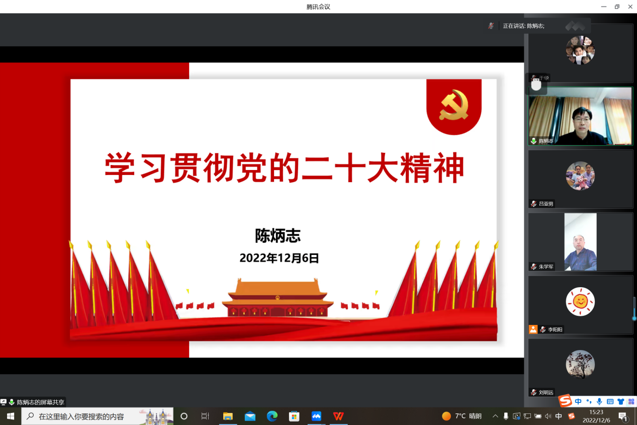 12月6日,3044永利集团官网党委书记陈炳志作党的二十大精神专题宣讲,学部领导班子成员、各党支部书记参加。