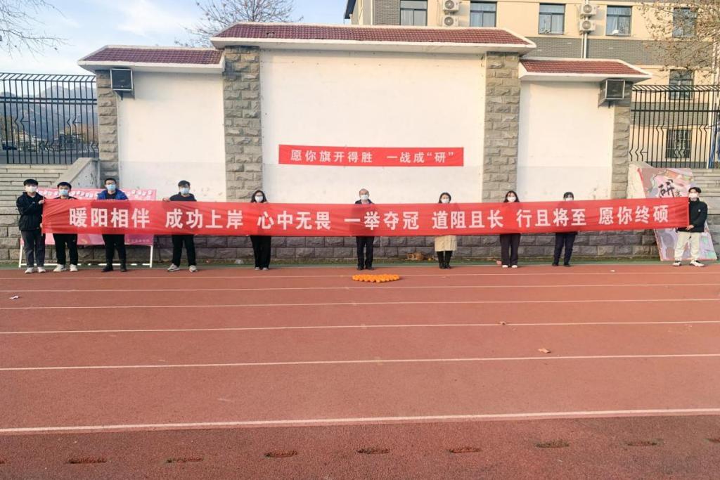 “愿你旗开得胜,一战成研”“研途顺意,有条不紊”“暖阳相伴、成功上岸、心中无畏、一举夺冠、道阻且长、行且将至、愿你终硕”“2023考研学子一往无前、一战必胜、一“研”为定。”鲜红的横幅上,一条条暖心的祝福语,这是考研学子们最真实的写照,也是学院最真挚的祝福。祝福学子们在紧张复习的日子里有条不紊,在认真准备的研途中一帆风顺!