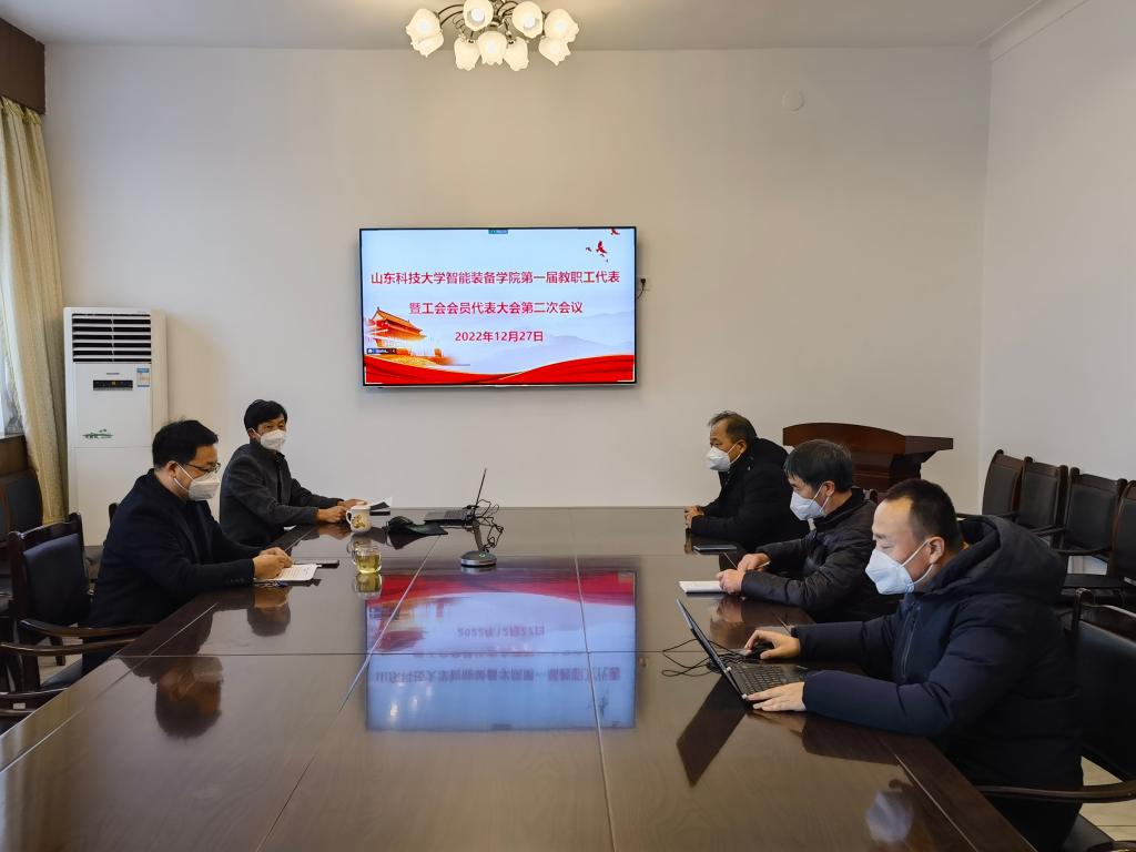 12月27日下午,智能装备学院召开第一届教职工代表暨工会会员代表大会第二次会议, 会议通过线下线上相结合的方式进行,会议由学院党委副书记兼副院长、工会主席裴国栋主持。