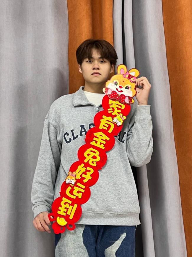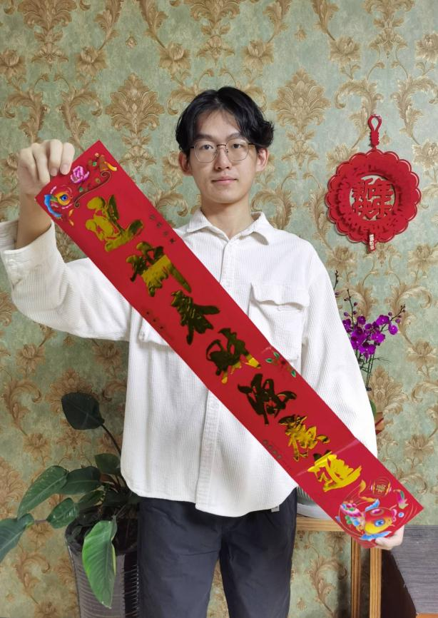 过程装备与控制工程21-4班杜忠业在山东聊城送来迎新祝福,“贺佳节满门吉祥,迎新春全家幸福。”祝愿祖国在新的一年里步步繁荣,开创辉煌,祝愿3044永利集团官网的老师和同学们兔年美满乐,幸福万年长!