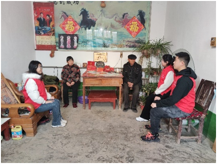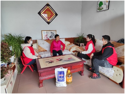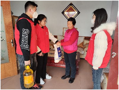 寒假期间,刘红妍带领青年志愿者代表当地政府来到当地贫困户进行新年慰问,为他们送上了食用油和面粉等慰问品,并主动为他们扫庭院、倒垃圾、清通道,经过青年志愿者们认真细致的劳动,家中变得整洁有序。