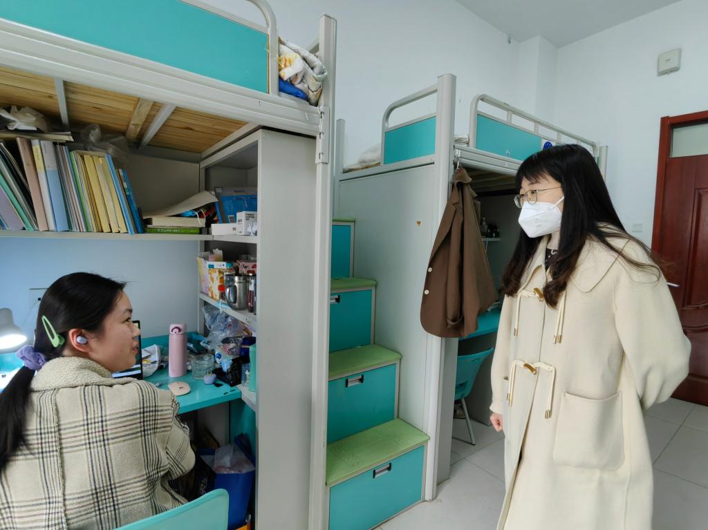 宿舍走访过程中,李文靖与同学们亲切交流,详细询问同学们的假期生活和新学期学习及工作打算,并对研究生复试、就业等方面给他们提出合理建议。同时,她提醒同学们及时调整生活作息,劳逸结合,加强体育锻炼划;叮嘱大家要增强安全意识,特别是在毕业生考试、求职过程中保护好自身的人身安全和财产安全。