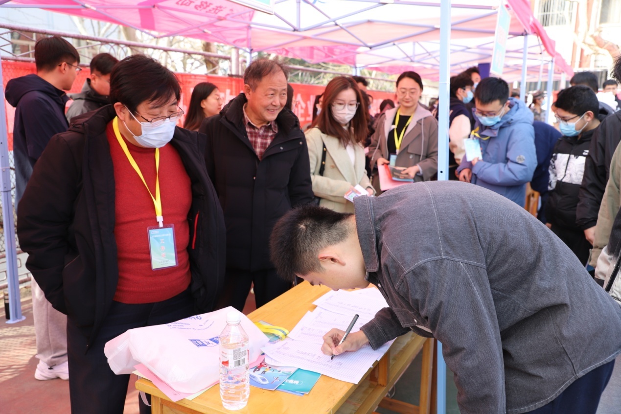 为进一步做好2023届毕业生就业工作,3月4日,智能装备学院积极组织学生参加校区2023年春季校园招聘会。学院党委书记黄德杰,党委副书记兼副院长裴国栋等学院领导班子成员亲临招聘会现场指导工作,与用人单位及毕业生亲切交流,学院全体辅导员、就业导师到场为毕业生解疑答惑,为学生提供就业指导与帮助。