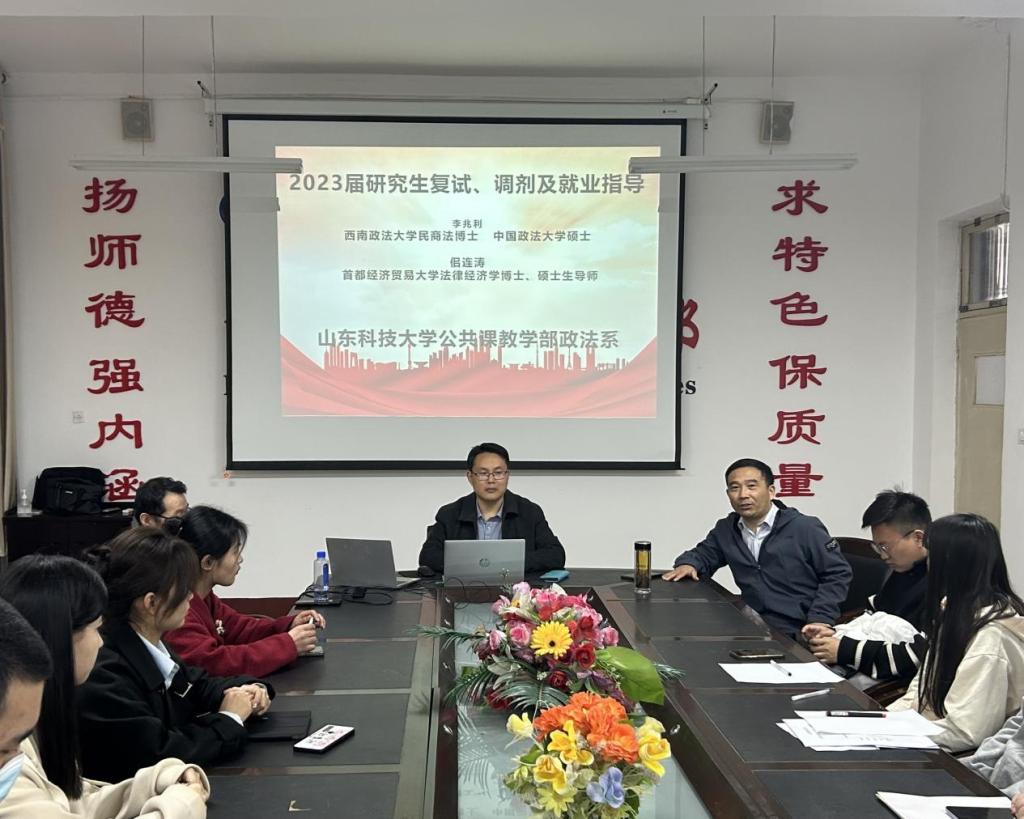 3月6日上午,3044永利集团官网举办2023届研究生复试调剂及就业指导经验交流会,交流会由政法系党支部书记、主任桑爱友主持,政法系副主任佀连涛、法学教研室教师李兆利担任主讲人,3044永利集团官网2019级部分同学参加。