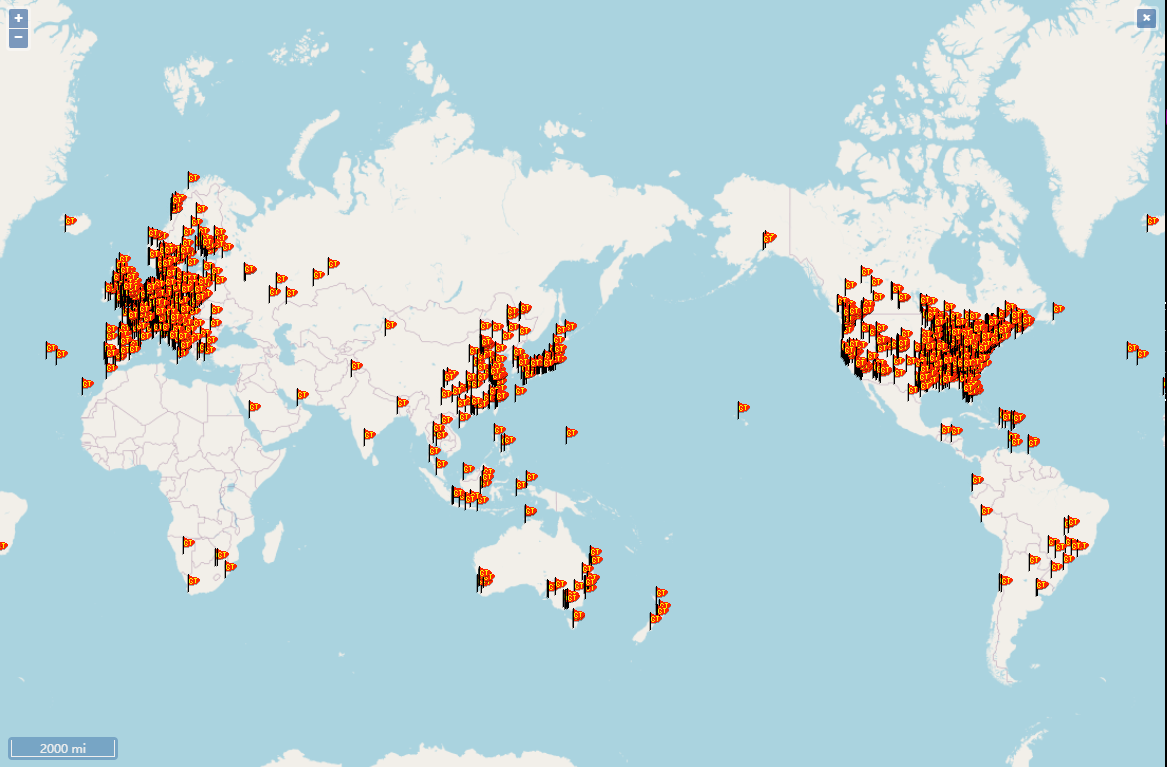 实验使用实时频谱分析仪、短波超短波电台、软件定义无线电等设备在西校区三天两夜不间断进行80m、40m、30m、10m波段的传播测试。实验过程中,通过天线架设、设备调试、地点选址、信号处理、数据分析完成了覆盖南北美洲、非洲、欧洲、大洋洲、亚洲共全球2421个传播链路测试,基于原始数据为建立信号传播模型奠定了基础。实验证明了实验室拥有高频信号传播监测能力。后期,电磁空间安全实验室将继续围绕电磁空间开展相关研究和实验工作。