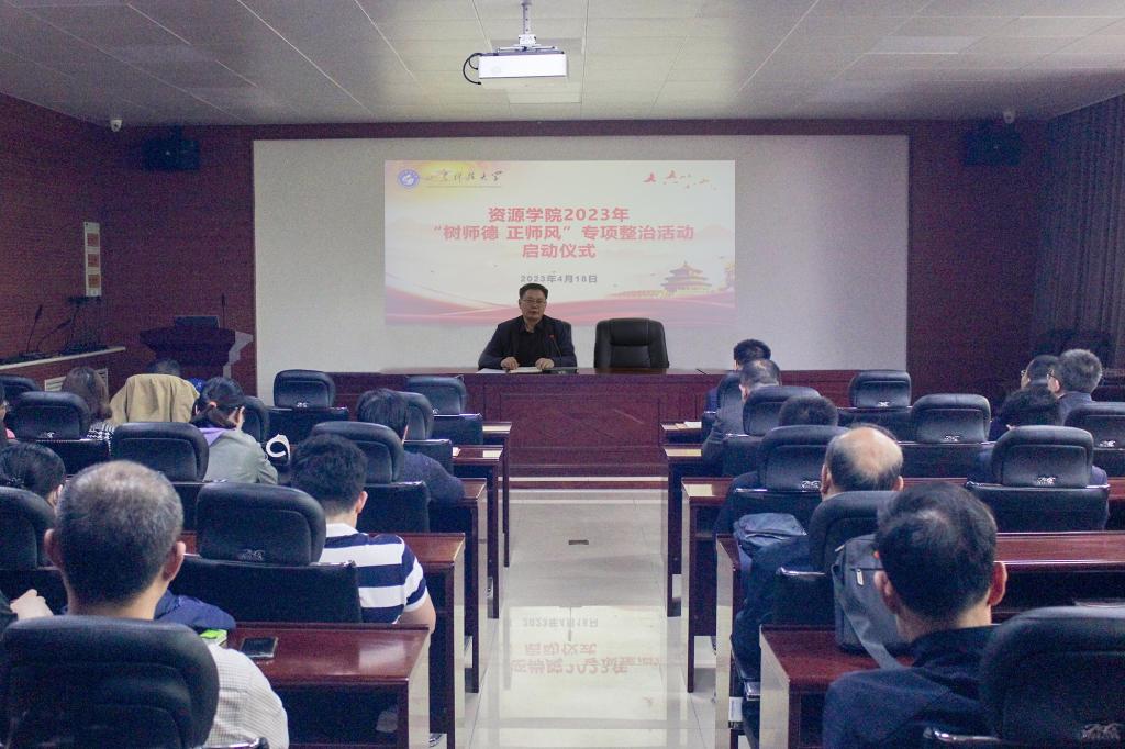 4月18日,资源学院在2#201举办2023年“树师德正师风”专项整治活动启动仪式。启动仪式由副院长秦广鹏主持,院长王清标发表讲话,全体教职工参加。