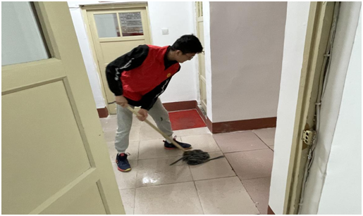 在活动过程中,学生党员们充分发扬不怕苦、不怕累的精神,大家分工明确,拖地、清扫门窗、擦拭桌椅,无论是积灰的角落,还是难以清理的窗沿,他们都认真仔细进行打扫,一尘不染。在大家齐心协力合作下,离退休工作处环境焕然一新。活动结束后,学生党员黄栋表示:“劳动中虽然有些辛苦,但我们也收获了满满的成就感。今后要以自己的实际行动践行党员的先锋模范作用,展现新时代学生党员的责任与担当。”
