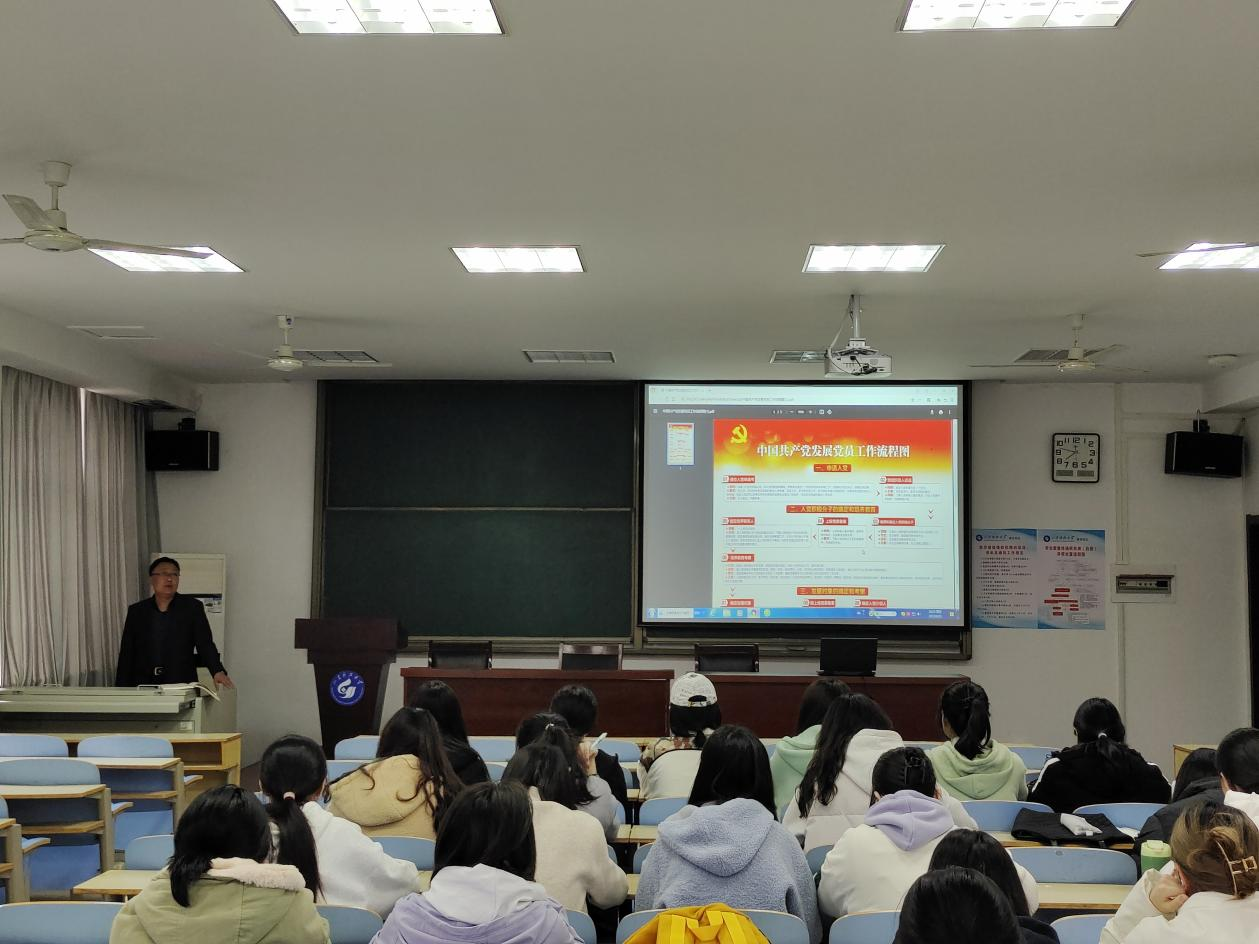 王衍国讲授了党员发展程序,鼓励青年学子不仅在组织上入党,更要在思想上入党,在学习工作生活方方面面起到模范带头作用,自觉接受党组织的考察和培养。