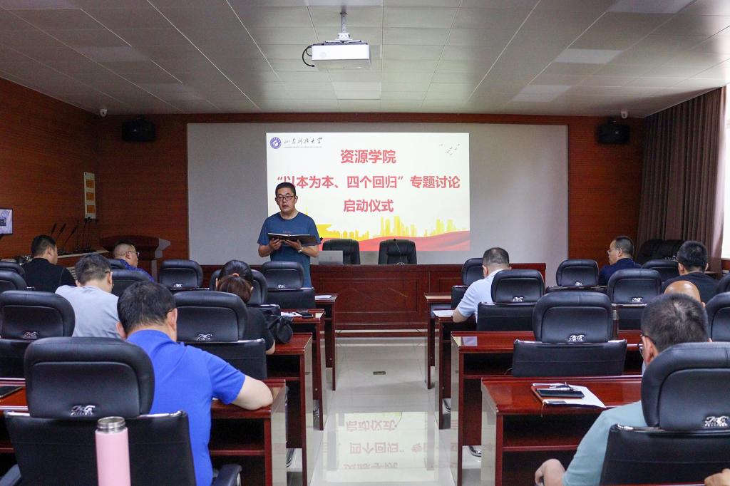 5月23日,资源学院在2号楼201会议室举办“以本为本、四个回归”专题讨论活动启动仪式。学院副院长秦广鹏主持会议,全体教职工参加。