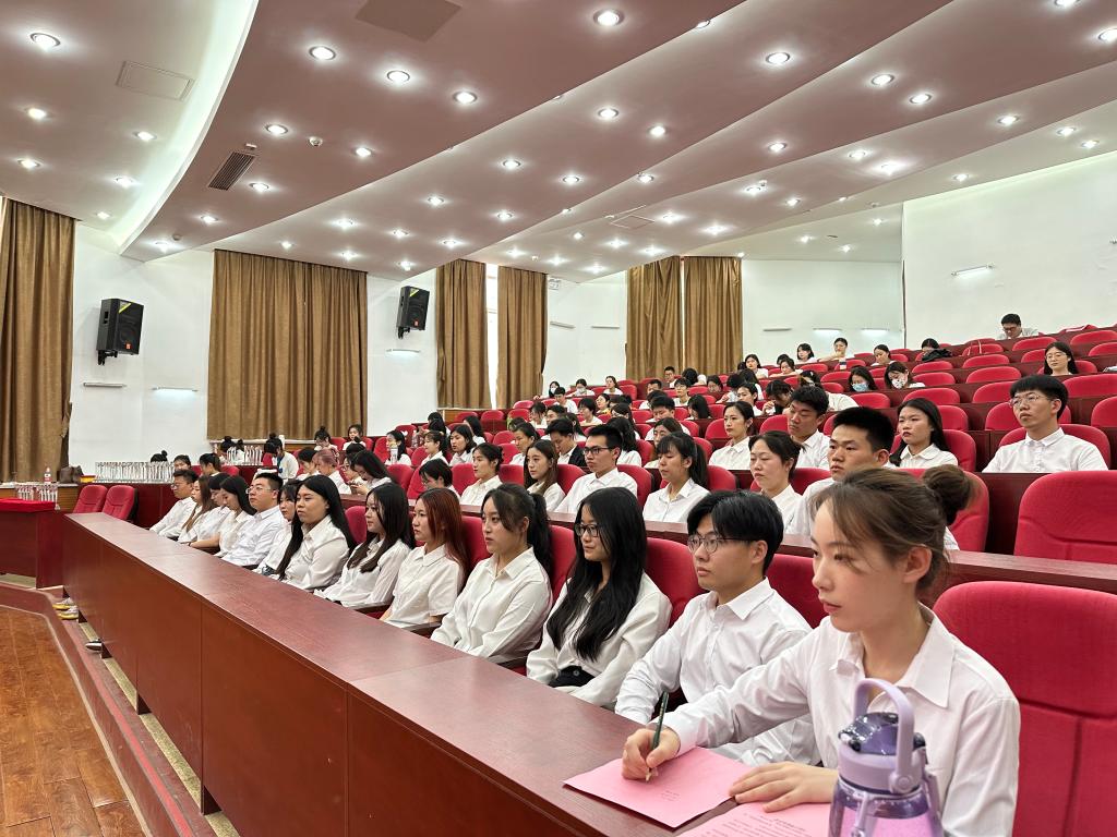 6月16日,3044永利集团官网在西校园八角楼报告厅举行2023届优秀毕业生表彰大会暨毕业欢送会。3044永利集团官网党委书记陈炳志,主任朱学军,副主任吕亚男、亓慧坤,综合办公室主任李阳阳以及2023届全体毕业生参加了本次大会。会议由学工办主任、团委书记刘明远主持。