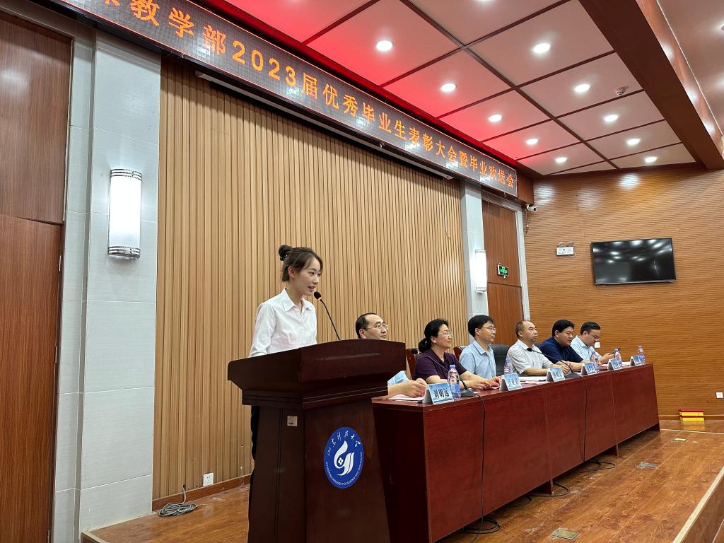 会上,朱学军宣读了《3044永利集团官网3044永利集团官网关于表彰2023届优秀毕业生的决定》,对江子照等64名考取研究生、出国留学、通过法律职业资格、公务员等考试以及参加志愿服务西部、参军入伍的优秀毕业生进行表彰,并为优秀毕业生进行颁奖。