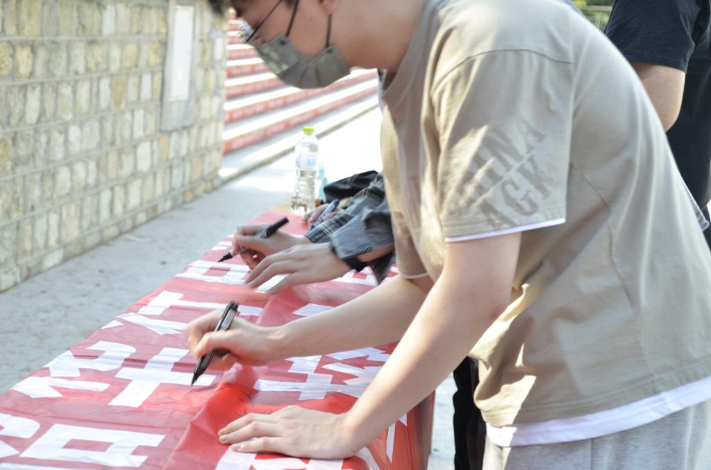 红色横幅上,一笔一画、一撇一捺,毕业生们用文字述说着在学校里的一点一滴真挚的回忆,表达着毕业生对母校的难舍之情。句句眷恋的话语寄托着2023届毕业生们对母校深深的留恋和祝福,传达着即将分别的感受,书写着对学院、老师与同学的祝福。学院老师纷纷前来,鼓励同学们带着属于智能装备学院的精神财富走向未来,脚踏实地,不忘初心,不断进取,在人生道路中书写更加璀璨的篇章。