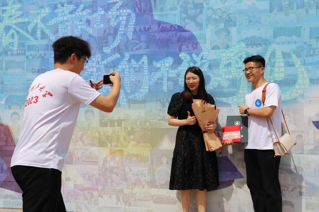 为了营造和谐、美好的毕业季氛围,切实增强毕业生的爱校、荣校之情,学院举办毕业生毕业生赠言签字活动。展板上,2023届全体师生的名字组成了一句:“青春不散场,我们不说再见”。同学们纷纷前来拍照打卡,和老师们合影留念。学院特别收集了2023届毕业生四年的点滴照片,精心设计成背景板。这是毕业生们留给母校最好的纪念,成为毕业季校园里一道难得的风景线。