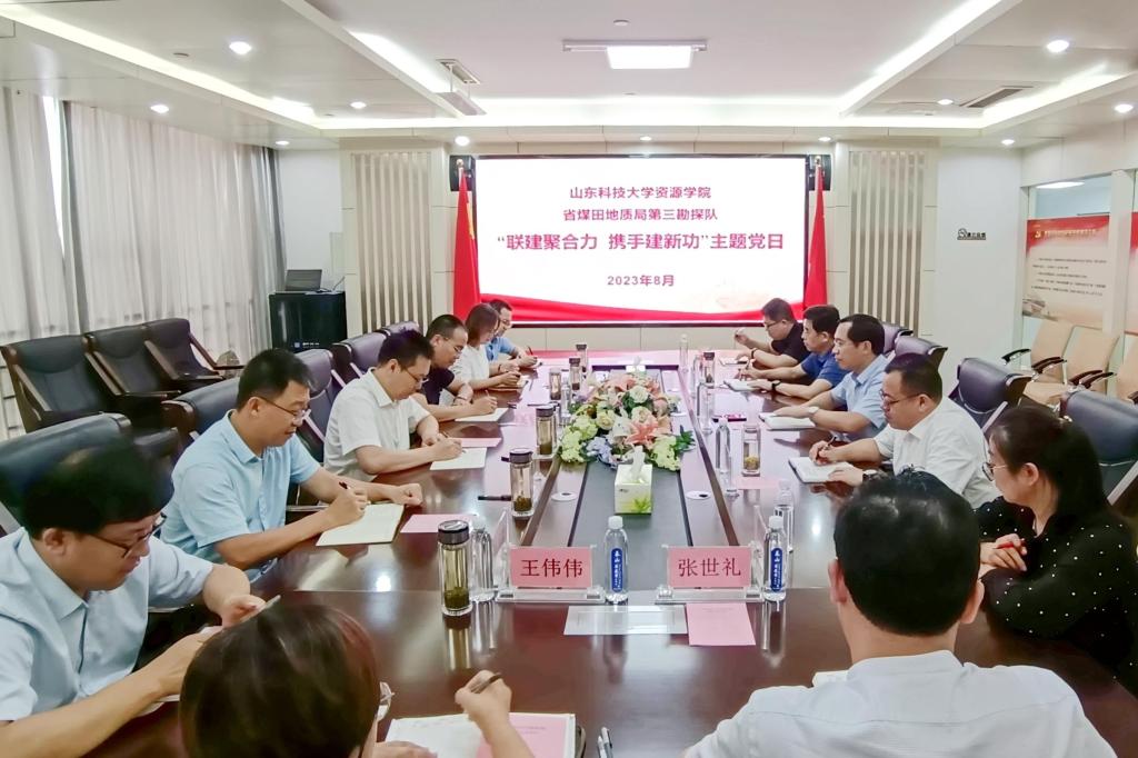 8月1日,资源学院院长王清标带队赴山东省煤田地质局第三勘探队开展“联建聚合力 携手建新功”主题党日活动,资源学院党委副书记程家国、学院副院长王辉、于小鸽及部分党支部书记参加。山东省煤田地质局第三勘探队党委书记兼队长李富强、党委副书记王涛以及相关部门负责人接待。