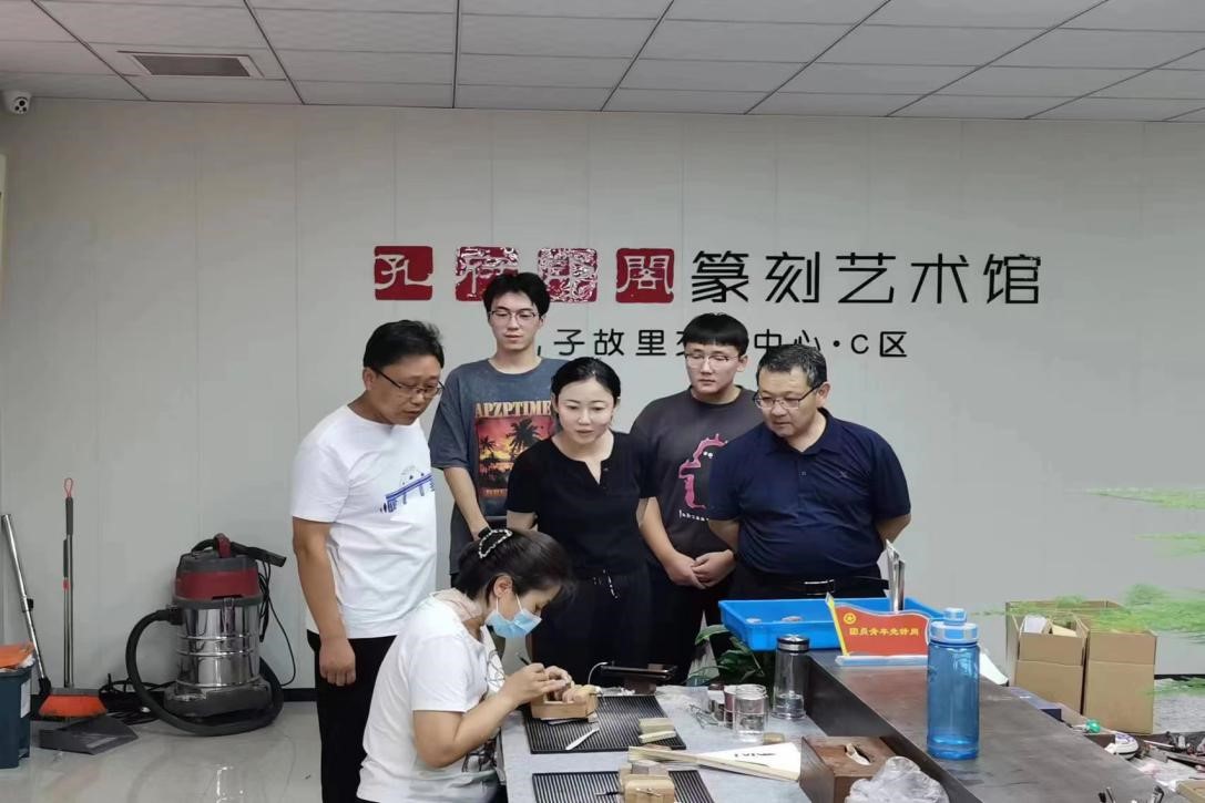 侯静娴带领团队成员走进孔府印阁文化传播有限公司,实地参观了其篆刻艺术馆、电商销售直播间。期间,团队负责人国际商务21-1班姜博怀,详细汇报了本次实践的行程内容、阶段性成果和心得体会。侯静娴勉励同学们要珍惜宝贵的实践机会,发扬吃苦耐劳精神,在实践中磨练意志,增长才干,把自己的所学、所长运用于实践,服务于社会。