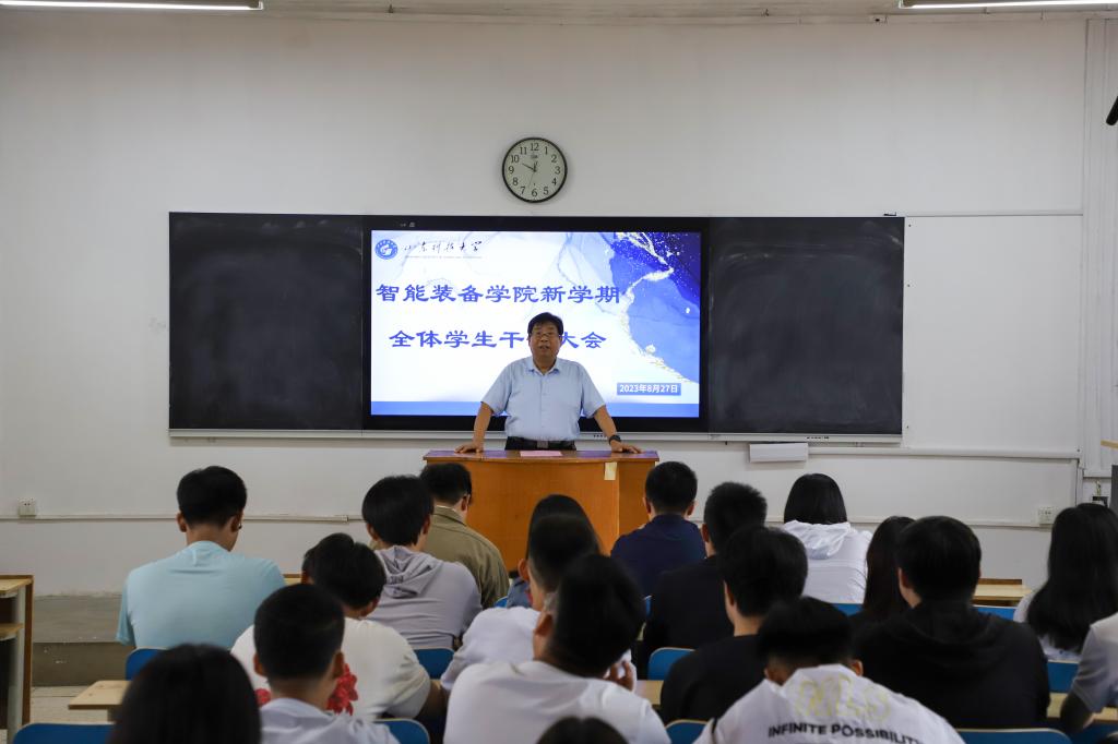 8月27日,智能装备学院分别于西校园1c103、东校园4号楼报告厅召开新学期全体学生干部大会。学院党委副书记兼副院长裴国栋,学工办主任、团委书记谢清勇,全体辅导员,各班级班长、团支书、副班长,学生会主要学生干部参会。会议分别由团委副书记曹园、辅导员郭艳培主持。