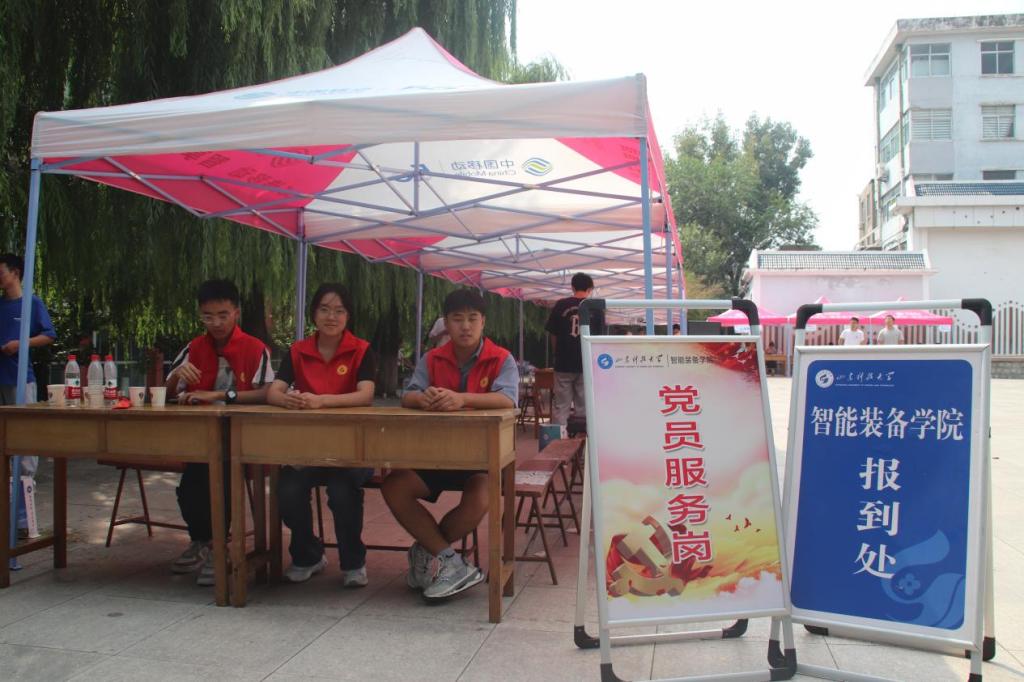 学院学生会同学组成的志愿服务队在迎新场地设立新生咨询处,维持迎新现场秩序,确保每位新生顺利办理入学手续。