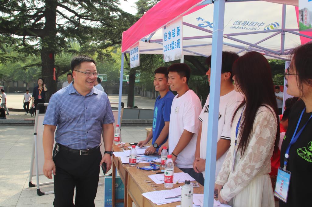 学院党委书记黄德杰,党委副书记兼副院长裴国栋等院领导班子在报到现场,指挥协调迎新工作,时刻关注新生报到情况。