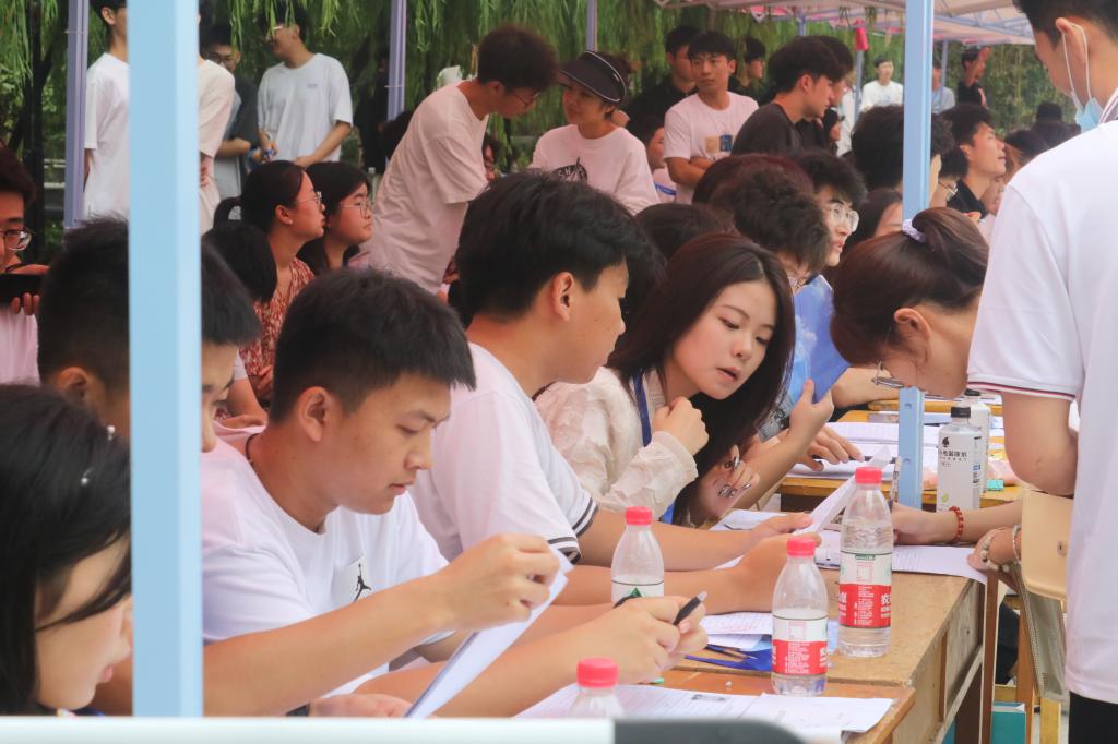 即使烈日悬顶、热浪铺面,志愿者们也仍然守候在自己的岗位,始终保持着灿烂、真挚的笑容和贴心的服务,充当着新生们的“人工导航”和“校园生活百科数据库”。
