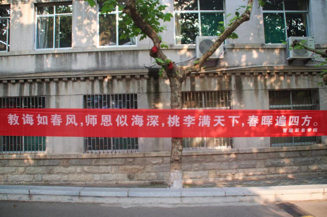 师恩如山,师恩似海。智能装备学院运用横幅的形式代表全体学生向老师们献上教师节的问候:“老师,教师节快乐!”
