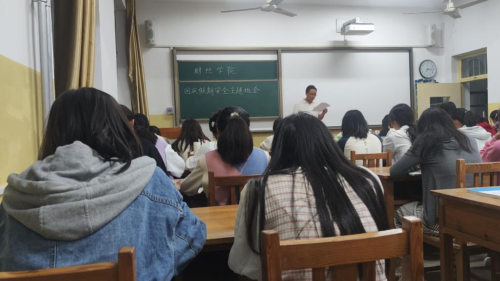 中秋节、国庆节双节即将来临,为提高学生的安全防范意识,维护国庆假期前后校园安全稳定,保障师生人身和财产安全。近日,财经学院团委全体辅导员积极召开班级会议,布置假期安全工作。