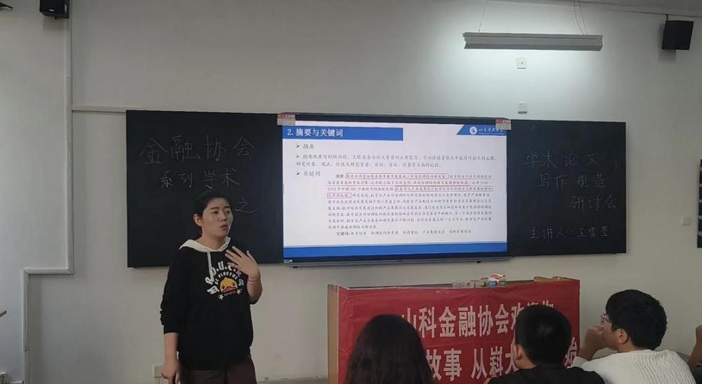 2023年10月25日,受财经学院金融协会邀请,财经学院王雪莹博士在西校园2209多媒体教室做“学术论文写作规范”报告。财经学院副院长主父海英、金融协会成员、相关专业学生参会,会议由金融协会会长陈书彤主持。