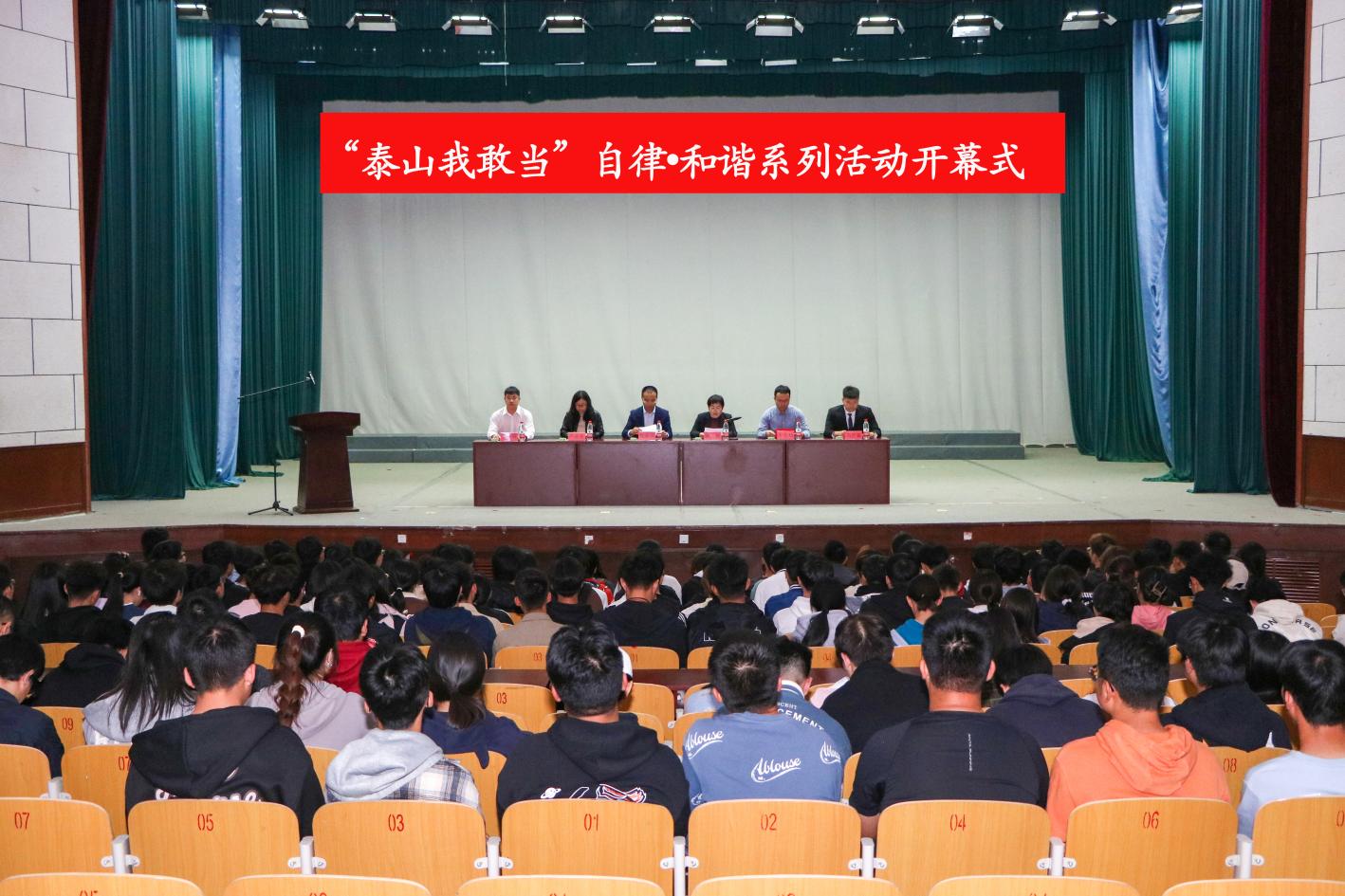 10月25日,资源学院第八届“泰山我敢当”大学生自律•和谐系列活动开幕式在西校园礼堂举行。资源学院党委副书记、副院长程家国,团委辅导员老师及2023级全体学生参加开幕式。