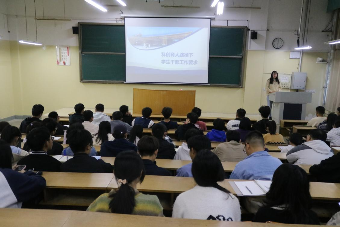 为让全体学生干部了解科创育人路径下相关工作要求。11月1日,智能装备学院在东校园5#206召开学生干部培训会,辅导员李明蔚作了题为“加强科技创新教育,培育科技创新人才”的讲座,各班主要学生干部参加培训。