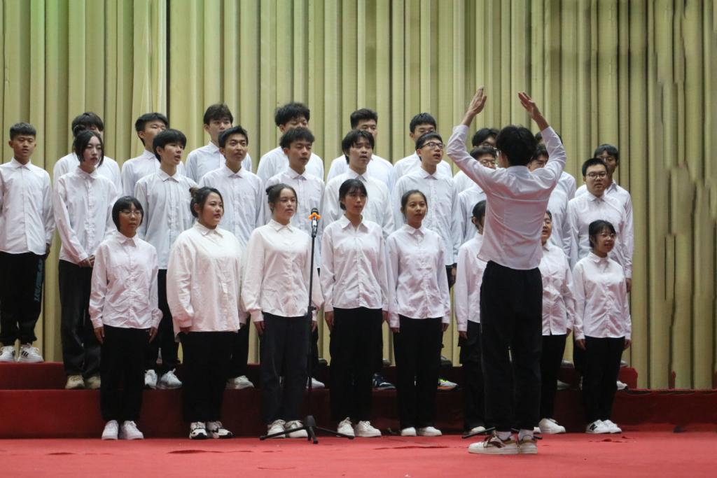 舞台上,同学们穿着统一的着装,各个精神饱满,充满斗志,伴随着音乐的旋律,配合着指挥员的手势,将所唱的歌曲淋漓尽致的展现出来。一曲《少年中国说》展现出新时代智院学子的活力与激情;一曲《科大校歌》展现出学生对科大校园的热爱;一曲《党旗飘扬的地方》表达了学生们爱党爱国的热血情怀。还有《孤勇者》《夜空中最亮的星》《巡光》《平凡之路》等歌曲被同学们演唱得振奋人心。抑扬顿挫的歌声、悠扬动听的音律,回荡在大厅中延绵不绝,收获了在场同学们热烈的掌声。比赛结束后,各评委根据团队综合表现情况进行打分,