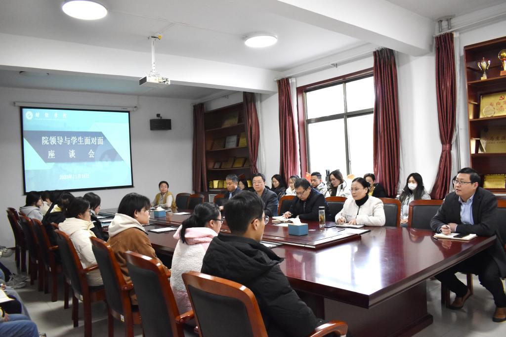 通过此次座谈会,我院更深入地了解到教师的教学情况、学生学习生活情况等方面的问题,为今后教育教学工作的顺利开展、教学质量的有效提升指明了方向。(文:李佩蓉 图:邢琳杰)