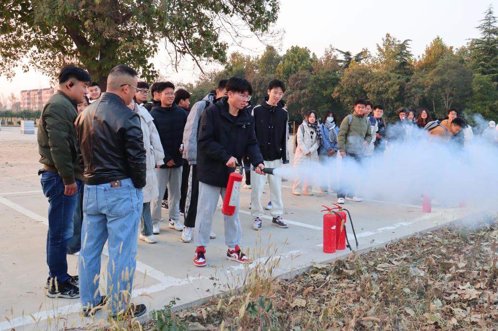 校区安全管理部消防科科长王新稳、副科长李林融以理论讲解与现场示范相结合的方式,向参训人员介绍了消防器材的正确使用方法,普及了预防火灾隐患、消除火灾隐患、组织人群疏散和火灾逃生等方面的知识,从多方面、多角度阐述了火灾的特点、后果及其危害。参训学生现场进行了消防器材的操作练习,初步掌握了消防器材的基本使用方法。