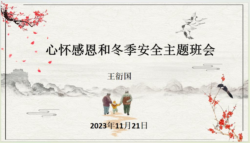 11月21日晚7:00,财经学院团委书记王衍国,在4#210组织召开了心怀感恩和冬季安全主题班会,国际商务2023级全体同学参加。
