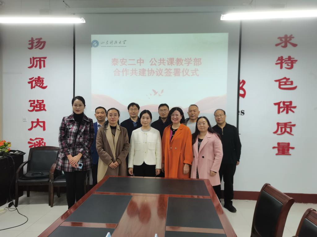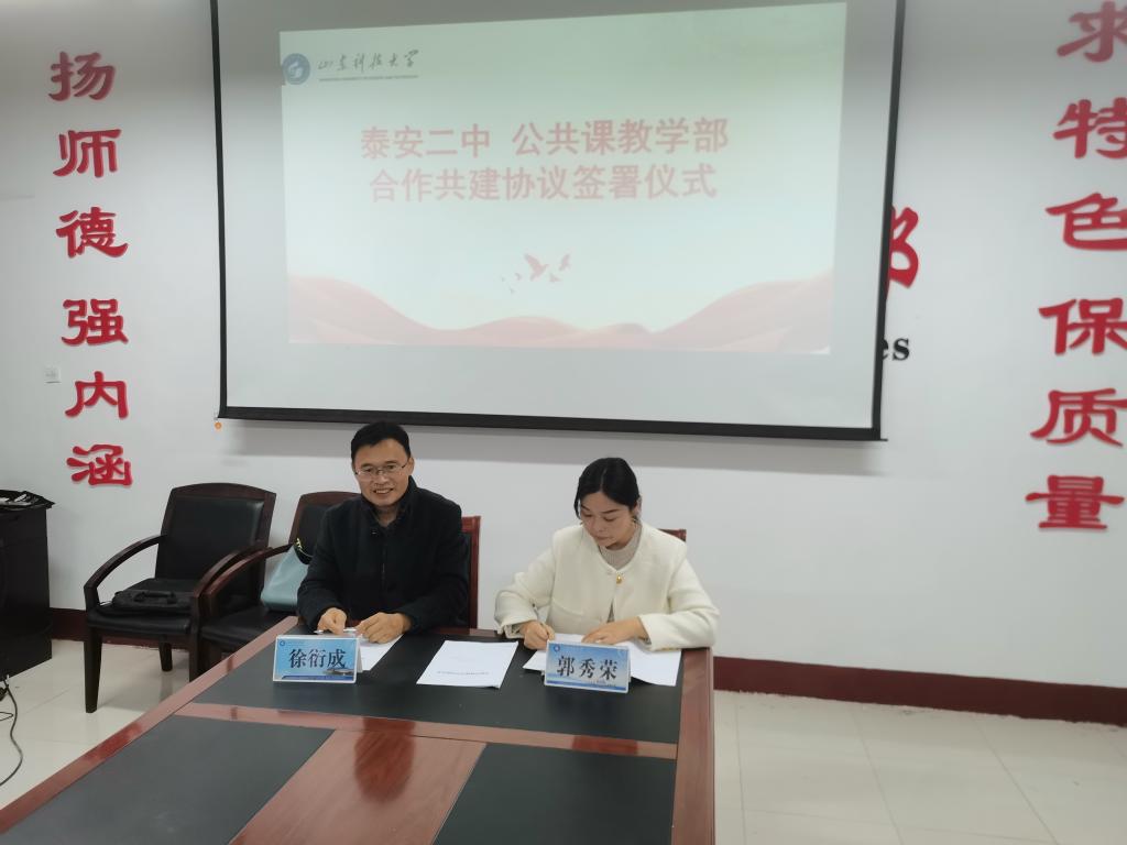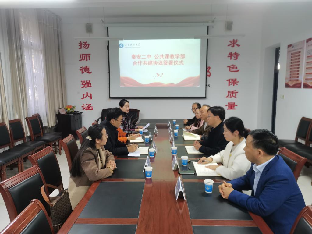 双方签署了《建设合作协议书》并进行了座谈交流。陈炳志介绍了泰安校区和3044永利集团官网的基本情况,从师资力量、教学科研、党建与业务双向融合、特色工作等方面对学部近几年的发展情况做了详细介绍,徐衍成介绍了泰安二中的办学条件、招生规模、师资力量和近年来取得的成绩等情况。双方就合作共建目标、结对工作制度、合作共建内容等方面进行了深入交流,并达成一致意见。