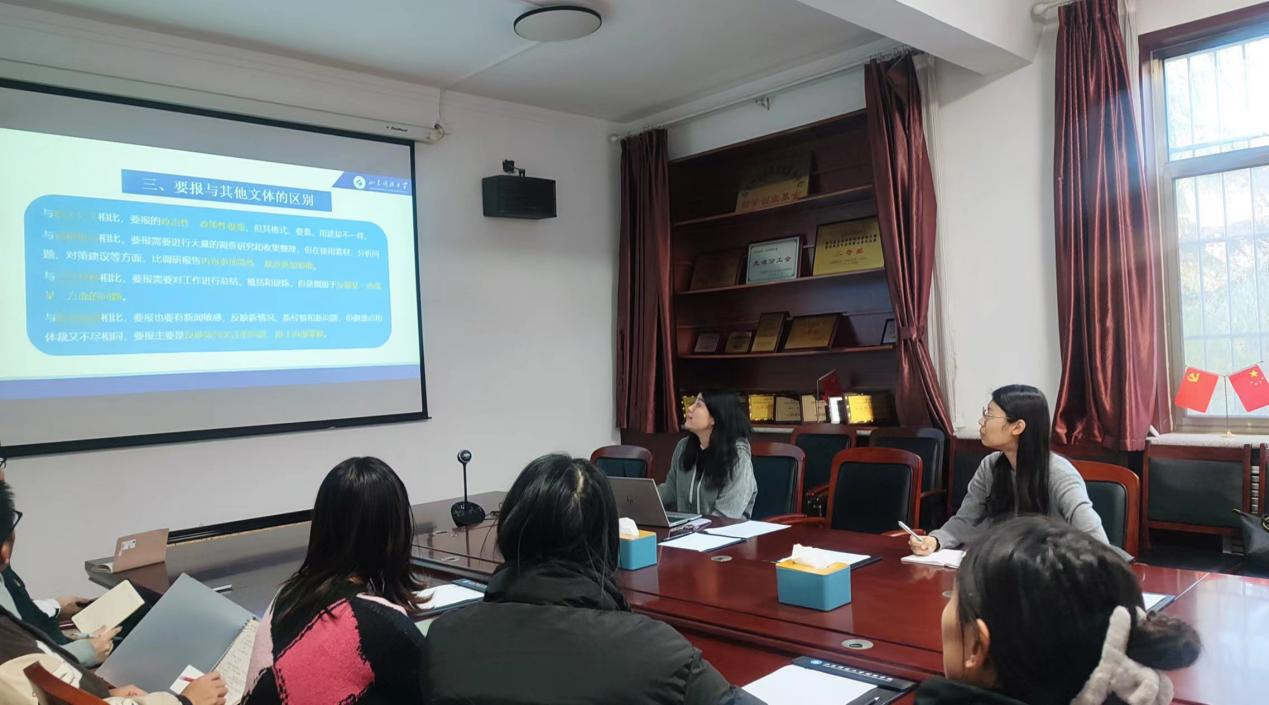 交流会上,王雪莹博士着重阐述了智库的内涵、功能、特点及与其他文体的区别,针对智库撰写特点,依次从素材收集、题目确定、内容安排三方面进行了介绍,并以获得省级领导批示的智库要报《全球典型科创走廊对京津冀创新共同体建设的启示建议》为例,对上述要点进行逐一解析。王雪莹博士指出,智库要报主题要紧密结合政府关注焦点,表述应简洁精炼,对策建议的提出要有高度、有层次、不能泛泛而谈。会后,与会老师们就交流内容展开讨论,王雪莹博士进行了针对性答疑。