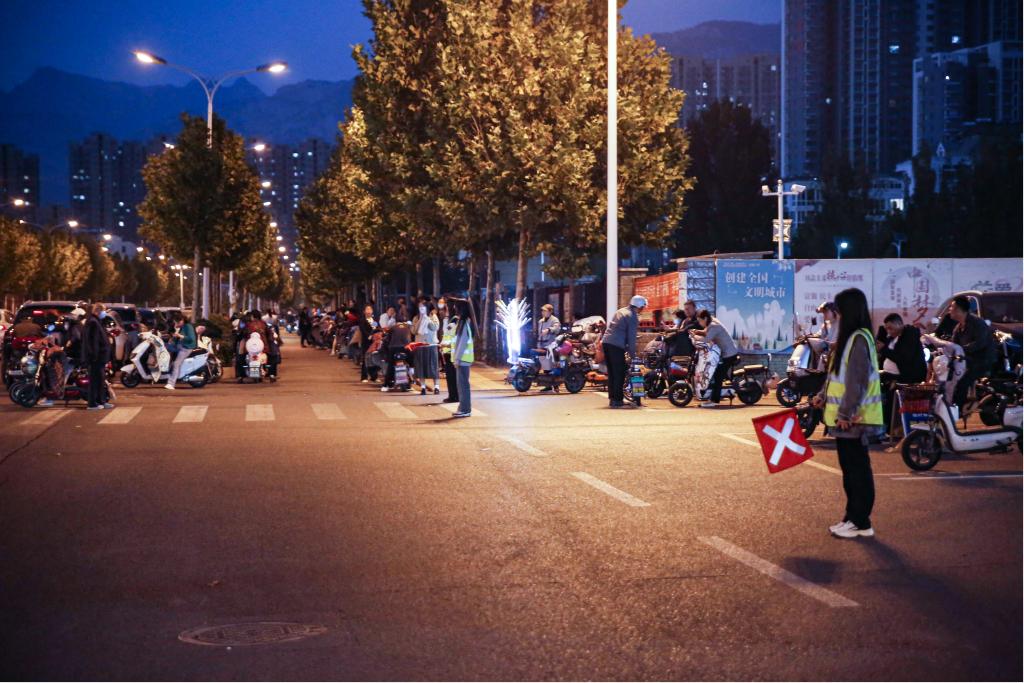 志愿者协助粥店中学保卫人员开展工作。