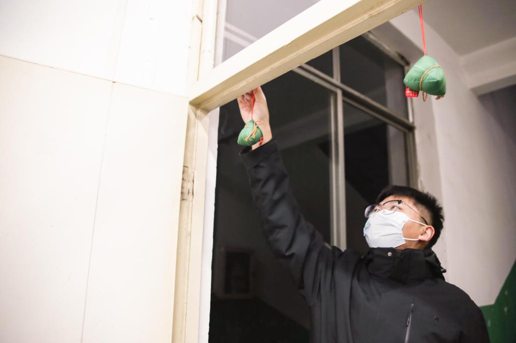 活动准备期间,学院组织志愿者将粽子形状的香包悬挂在每一间考研自习教室门框上方,考生们出入教室头顶粽子,并高高举起,寓意一举高中。志愿者在每位考生书桌上摆放“高粽”挂件,放置“高粽”胸针,还特意在包装袋上写了祝福语,借此机会表达对考研学子考研必胜的祝福。活动中,志愿者为考生赠送“高粽”玩偶,寓意考研路上一路顺意、争得桂冠。