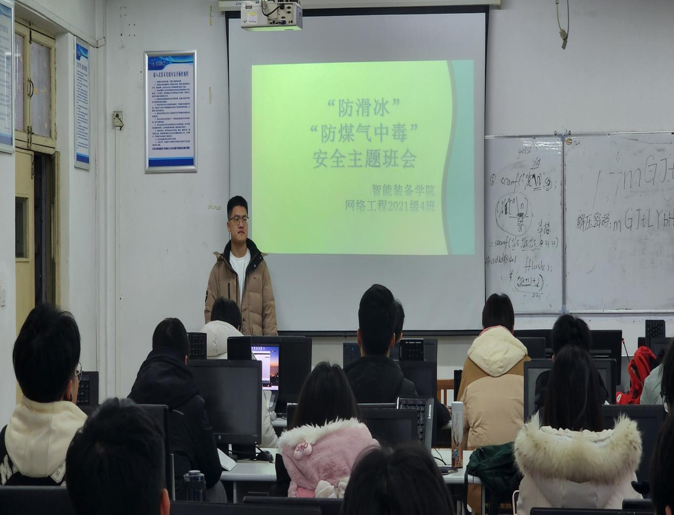 为提高大学生对冬季安全的警觉性,预防滑冰和煤气中毒等安全隐患,12月7日-8日,智能装备学院组织各班级召开预防滑冰与预防煤气中毒主题班会。