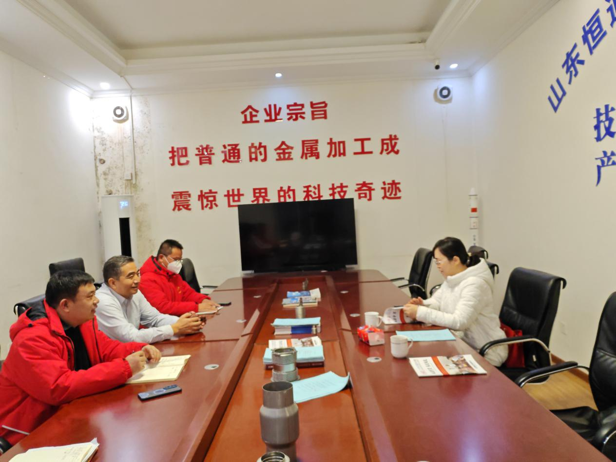 山东恒通膨胀节制造有限公司总经理王焕庆代表公司对娄淑梅一行的到来表示热烈欢迎,并详细介绍了公司的发展历程、企业文化、特色产品、人才需求等情况。娄淑梅详细介绍了学院历史沿革、专业设置、学科建设和师资队伍等多个方面,重点介绍学院近年来在人才培养、科学研究和服务地方等方面取得的丰硕成果。她希望通过“访企拓岗”活动深入了解企业用人需求,加大校企对接力度,深化校企合作,在为企业输送高质量毕业生的同时,也为毕业生发掘更多岗位资源,实现共赢发展。(智能装备学院供稿)