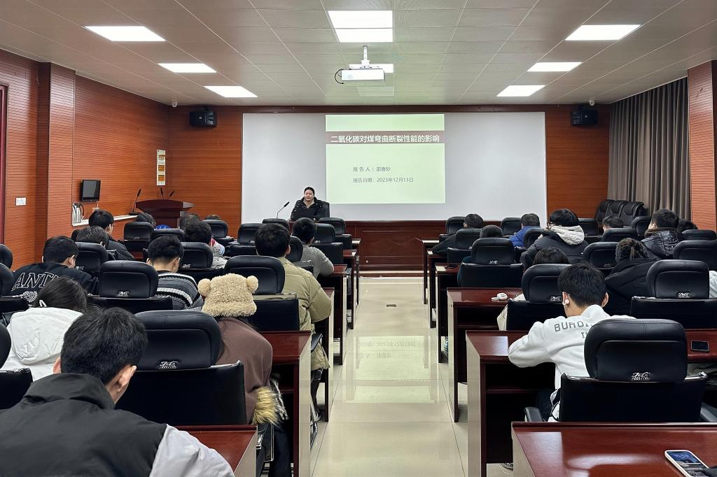 12月13日,资源学院教师邵唐砂在东校园2号楼201会议室为研究生作“二氧化碳对煤弯曲断裂性能的影响研究”学术报告。