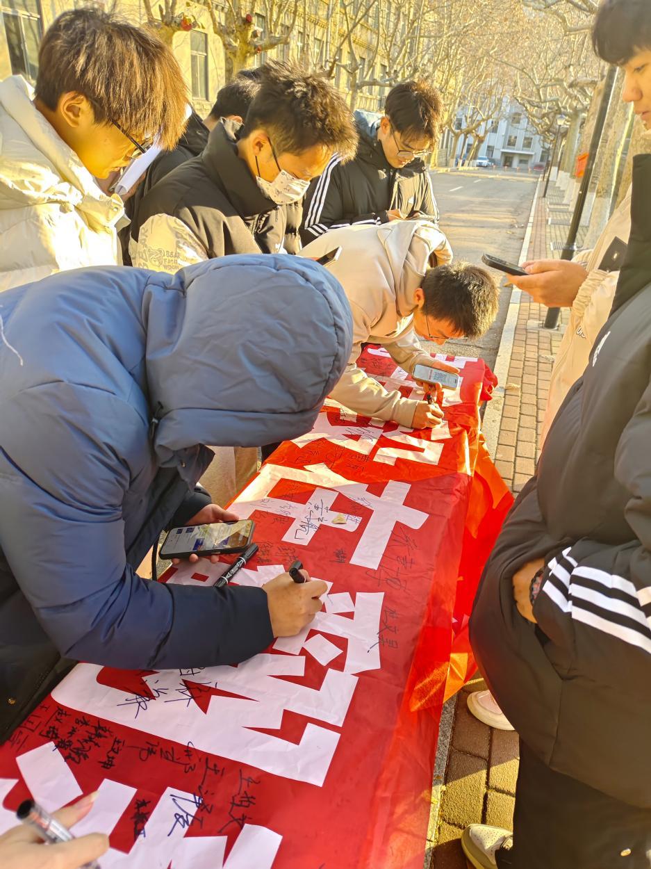 为了增强同学们防范网络诈骗的安全意识,12月19日,智能装备学院在东校园林荫道举办“预防网络诈骗”签名活动。