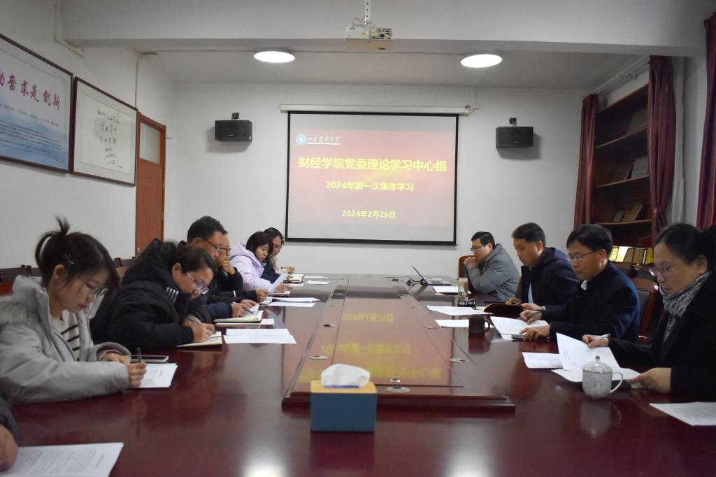 2月26日下午,财经学院党委理论学习中心组(扩大)开展2024年第一次集体学习。学院党委书记陈炳志主持学习,学习中心组成员及各部门负责人参加学习。