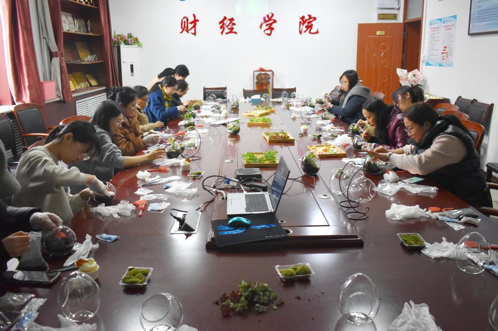 和风传春意,人间草木知。为丰富财经学院女教师业余生活,增近彼此间的交流与合作,充分展现女教职工的精神风貌,3月7日下午,财经学院组织开展了“三八”妇女节微景观制作活动。