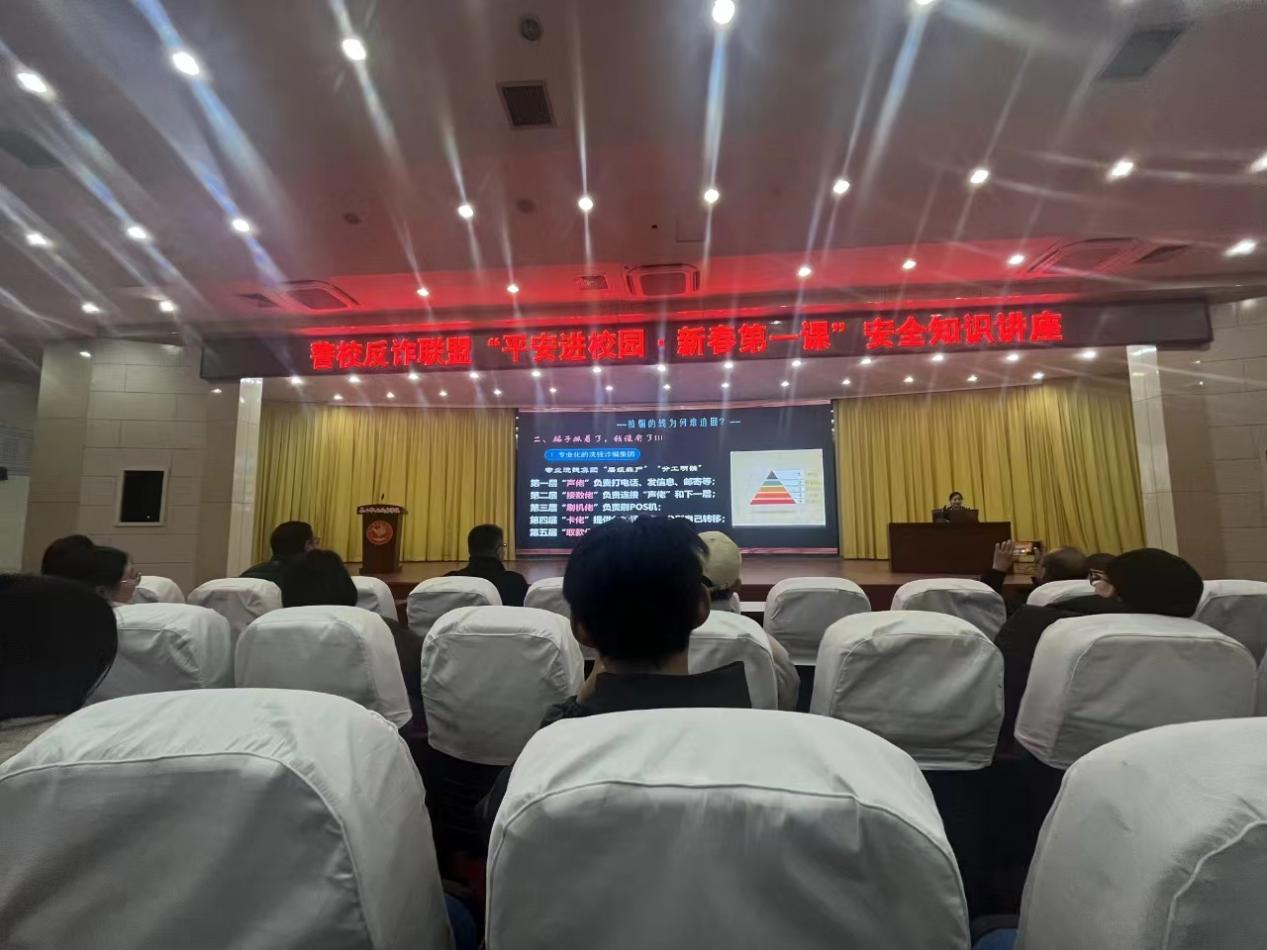 为充分发挥“警校反诈联盟”机制作用,进一步增强学生在反诈、禁毒、网络安全、校园安全等方面的知识储备和意识能力,3月6日,智能装备学院学工办主任、团委书记谢清勇带领部分学生参加了泰安市公安局泰山分局组织的“平安进校园 新春第一课”活动。