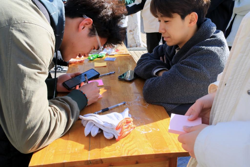 本次活动除了向全体女生表达祝福以及分发节日礼物,还特别组织了便签书写环节。活动开始,同学们纷纷加入了便笺书写活动中,在心愿留言活动中,同学们有的写下自己的理想,有的是写下对朋友和家人的祝福,有的写下自己的趣味心愿。随着一个又一个真诚的祝福被书写,现场充盈了温馨而醉人的祝福暖流。在学生会工作人员的协助下,将祝福传递给每一位同学。