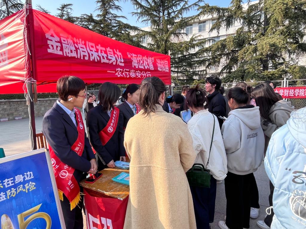 本次活动由财经学院联合中国农业银行、中国工商银行、新华人寿、中国人寿、太平洋财险、天安财险五家泰安分公司共同举办。在活动进行过程中,金融保险业相关工作人员为学生普及了投资、理财、消费者权益等相关金融知识,重点介绍了金融诈骗的防范要点,参与活动的学生们认真学习、虚心求教,受益匪浅。