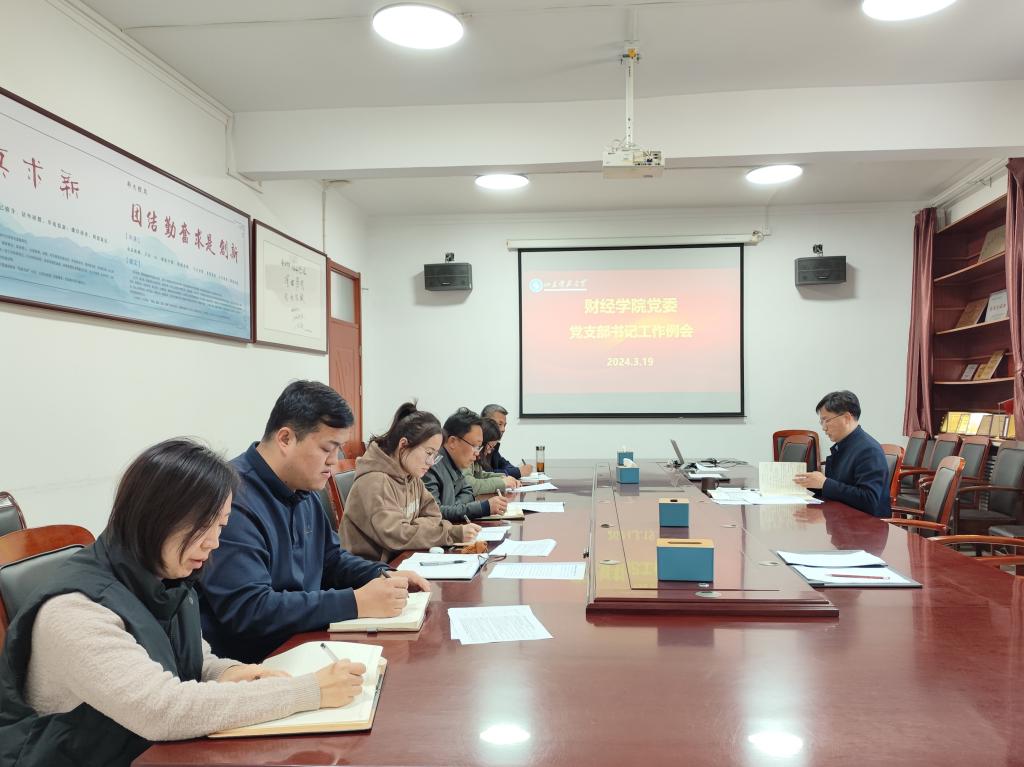 为提升党建工作谋划水平,全面完成2024年学院党建工作各项任务,2024年3月19日下午,财经学院党委召开党支部书记工作例会。会议由学院党委书记陈炳志主持,各党支部书记参加会议。