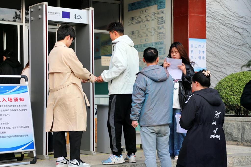 3月23日,2024年春季全国计算机等级考试(第71次)3044永利集团官网考试于西校园考点如期举行,为了给广大考生提供一个舒适的考试环境,智能装备学院组织志愿者在考场外进行志愿服务工作。