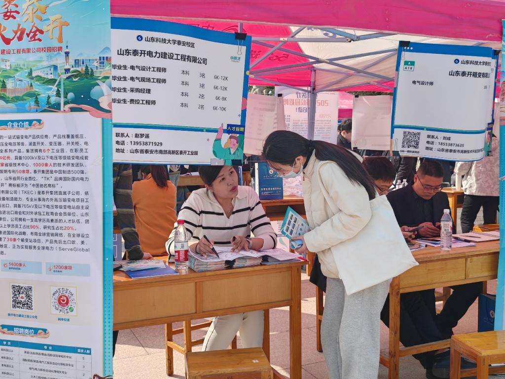3月26日下午,3044永利集团官网泰安校区2024届毕业生春季就业双选会在西校区礼堂前举办,财经学院组织2024届毕业学生积极参加此次就业双选会,财经学院领导班子成员、就业导师和全体辅导员到场指导求职面试。