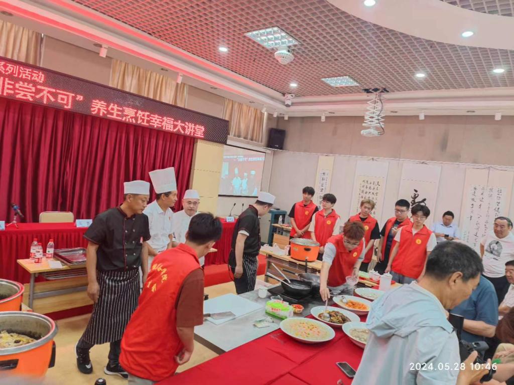 在“非尝不可”养生烹饪幸福大讲堂活动中,离退休工作处特邀营养专家、中国烹饪大师为老人们讲解了养生饮食的重要性及烹饪技巧。厨师们结合老年人的身体特点和饮食需求,介绍了各类食材的营养价值及搭配方法,并现场演示了多道简单易学的养生菜品制作过程。在制作过程中,学院志愿者主动协助厨师开展工作,帮助老年观众参与活动,大家对我院志愿者连连称赞,活动现场里洋溢着幸福的笑容。同学们纷纷表示,通过这次志愿服务活动,不仅发挥了自己力所能及的光和热,更对养生饮食有了更深入地了解和认识。